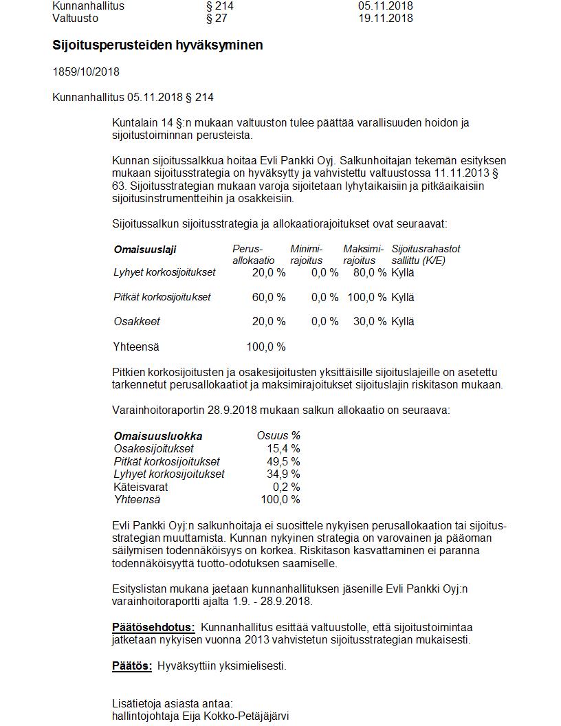 Pöytäkirja 19.11.2018 Pykälä 27