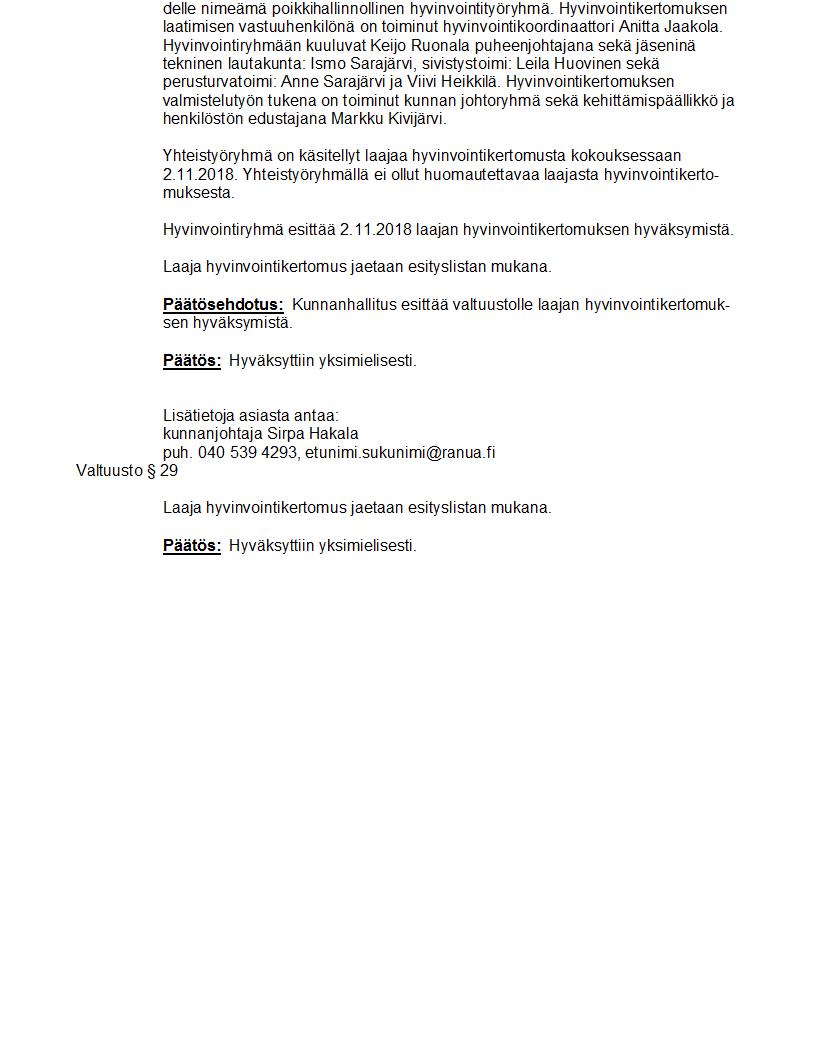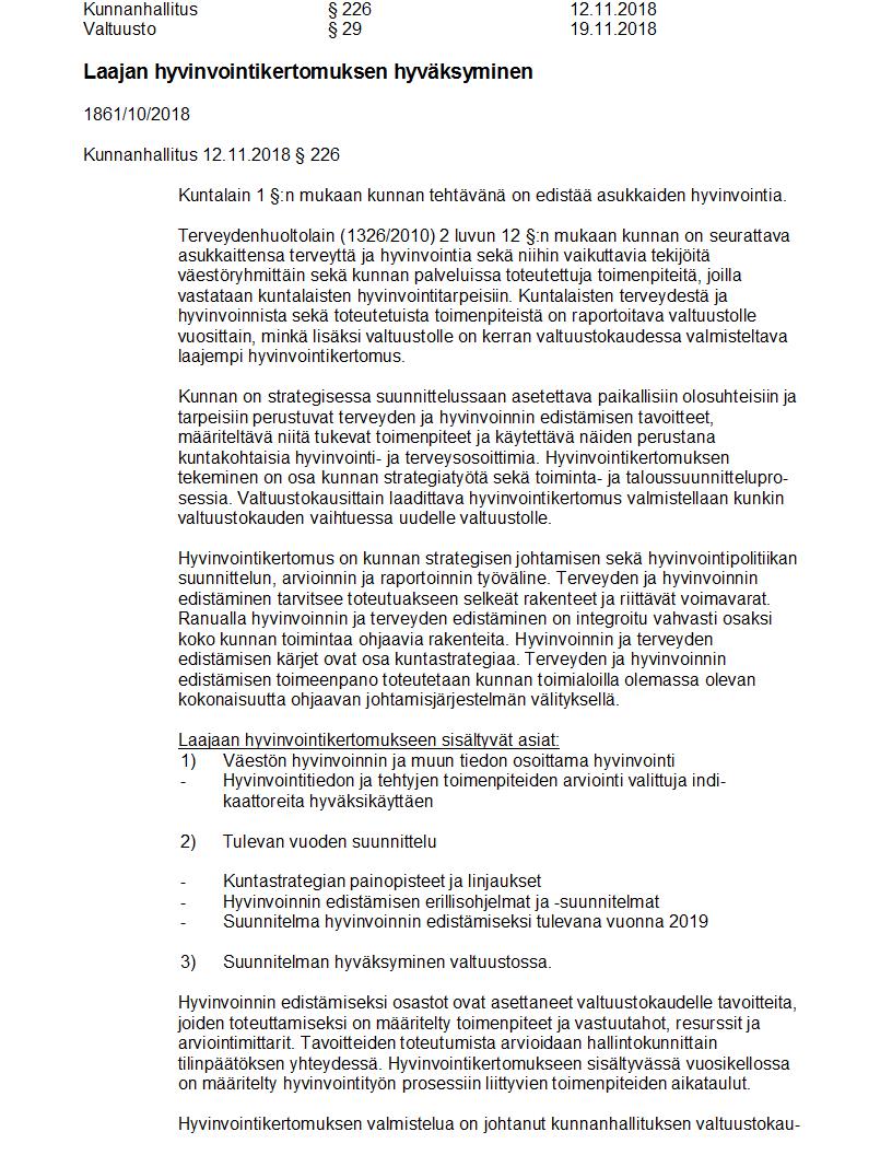 Pöytäkirja 19.11.2018 Pykälä 29