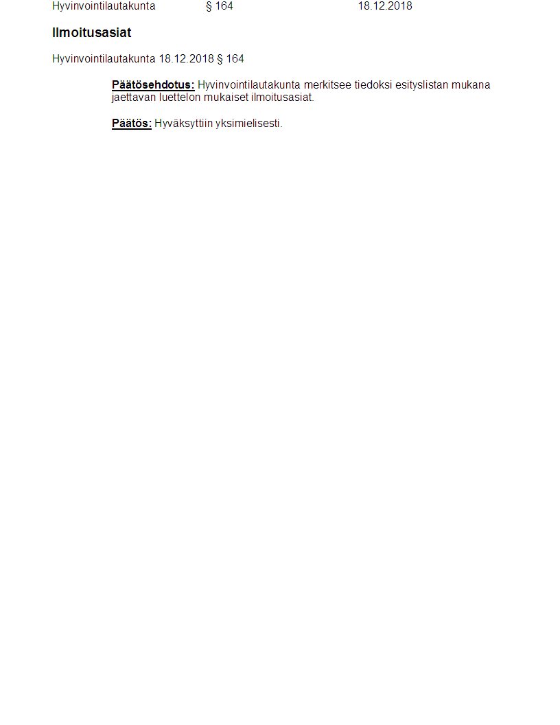 Pöytäkirja 18.12.2018/Pykälä 164