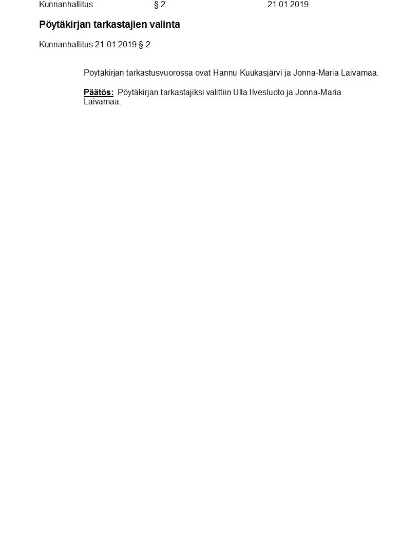 Pöytäkirja 21.01.2019/Pykälä 2