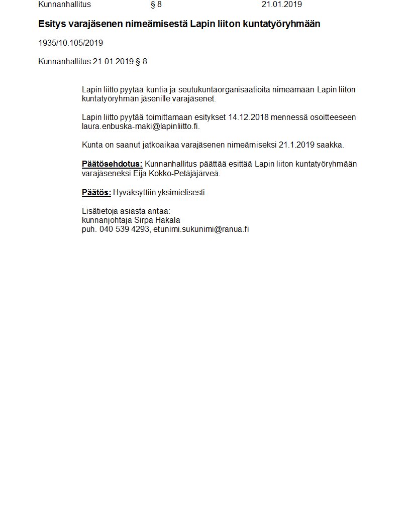 Pöytäkirja 21.01.2019/Pykälä 8
