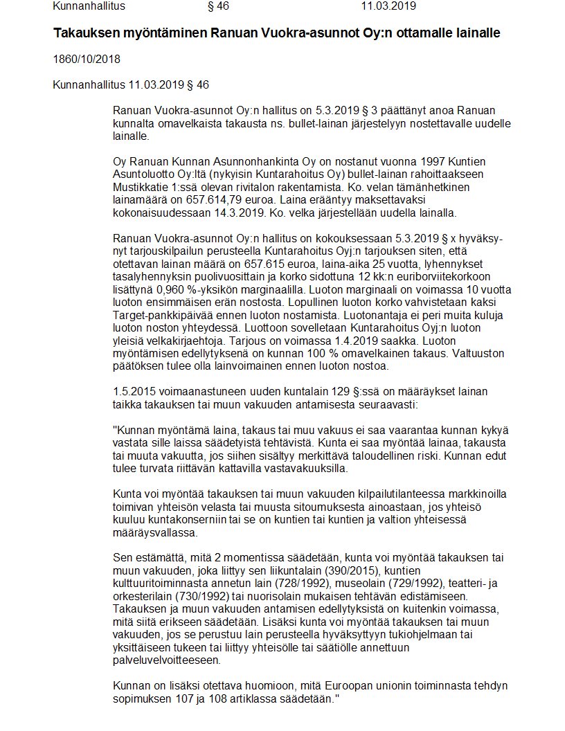 Pöytäkirja 11.03.2019/Pykälä 46