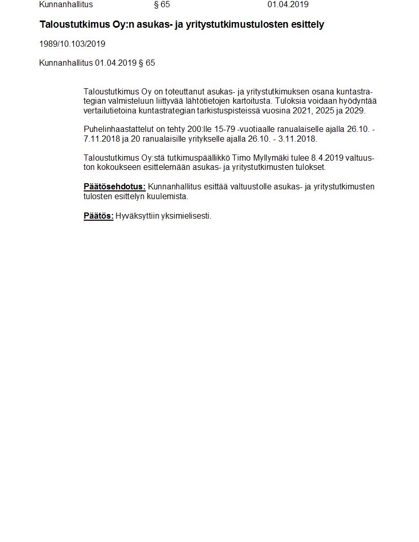 Pöytäkirja 01.04.2019/Pykälä 65