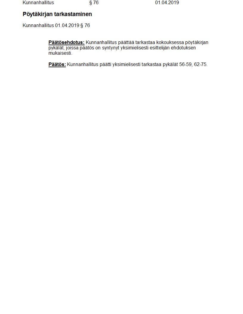 Pöytäkirja 01.04.2019/Pykälä 76