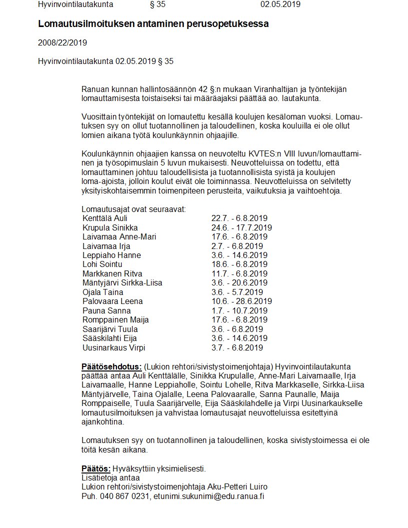 Pöytäkirja 02.05.2019/Pykälä 35