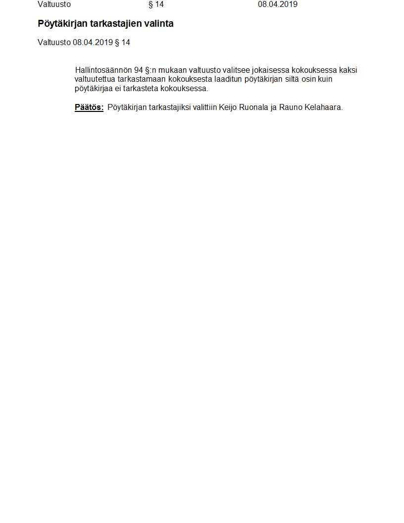 Pöytäkirja 08.04.2019/Pykälä 14