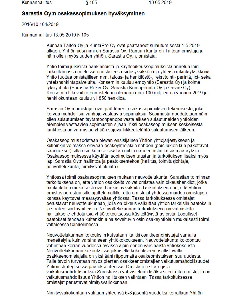 Pöytäkirja 13.05.2019/Pykälä 105