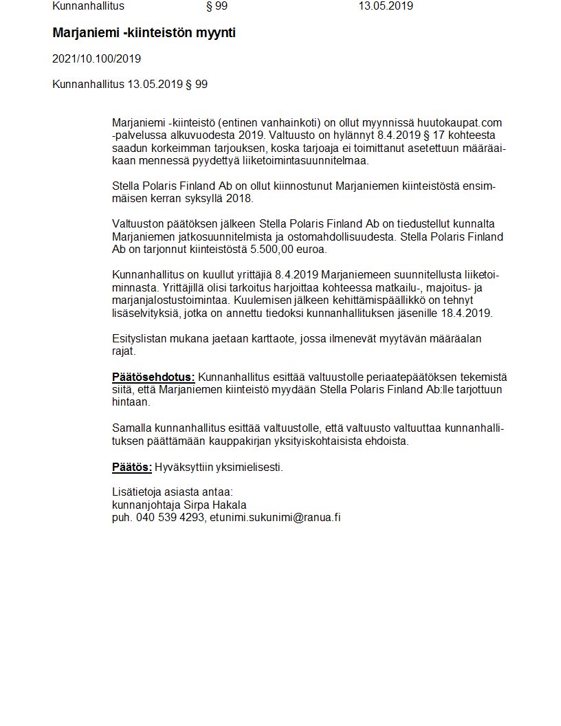 Pöytäkirja 13.05.2019/Pykälä 99