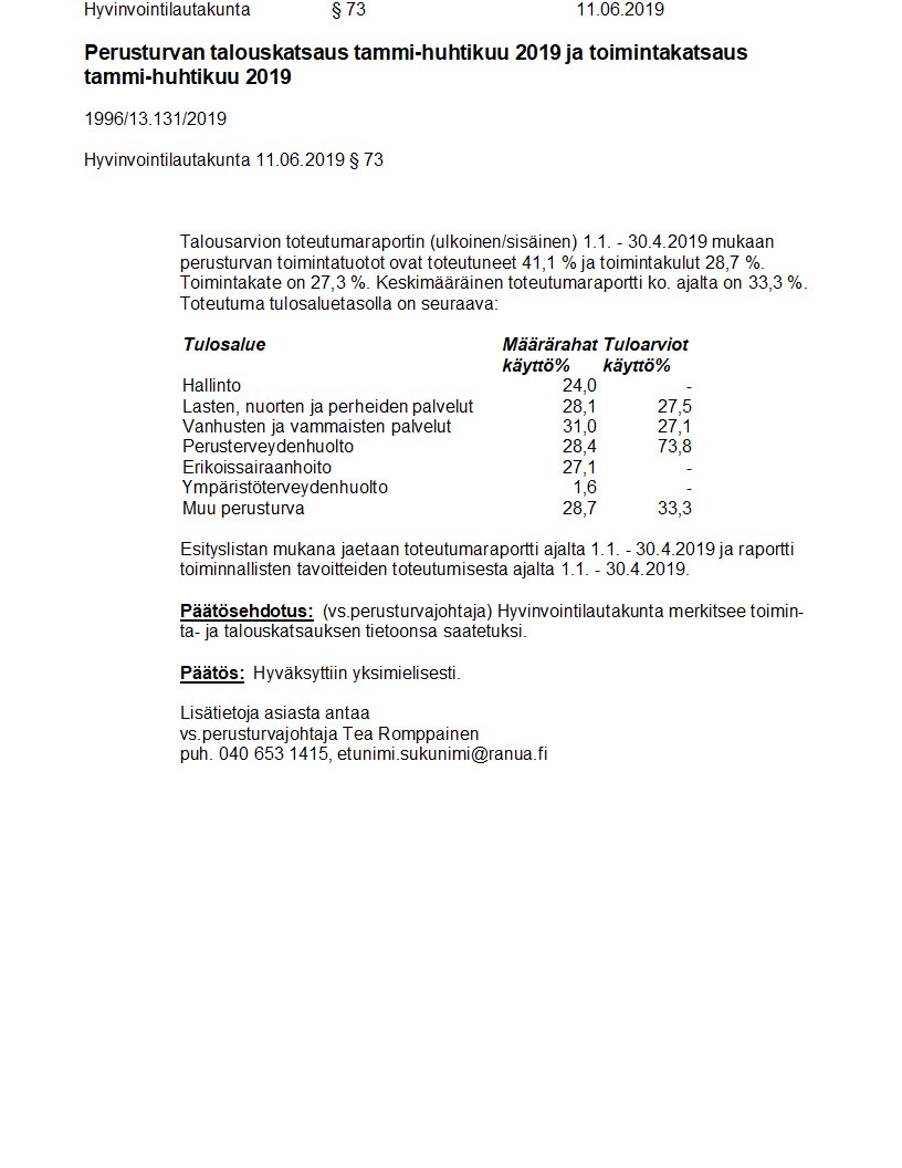 Pöytäkirja 11.06.2019/Pykälä 73