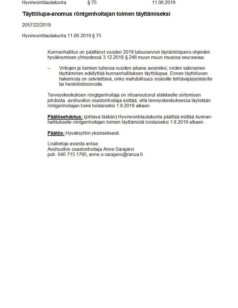 Pöytäkirja 11.06.2019/Pykälä 75