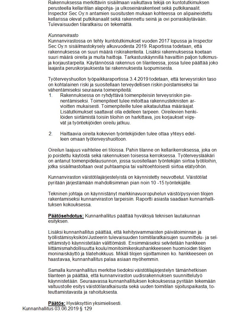 Pöytäkirja 03.06.2019/Pykälä 129