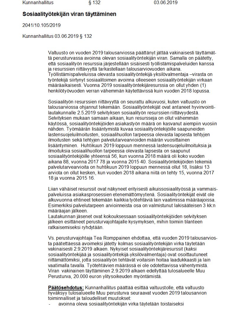 Pöytäkirja 03.06.2019/Pykälä 132