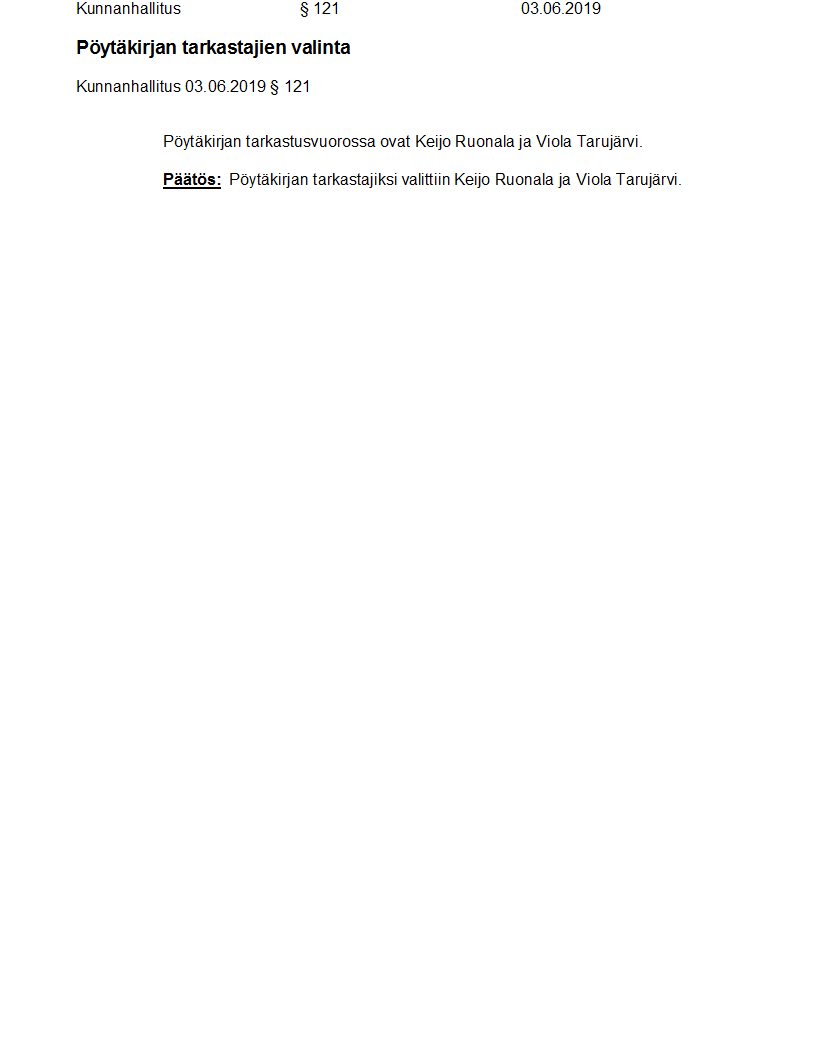 Pöytäkirja 03.06.2019/Pykälä 121