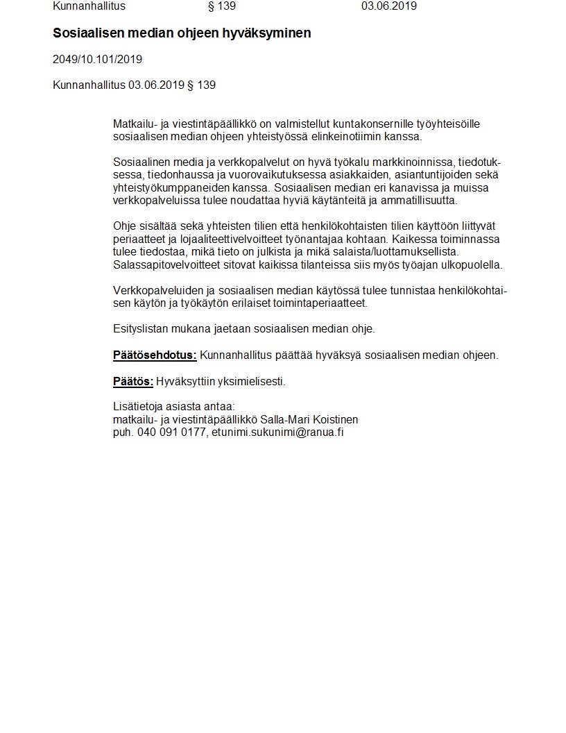 Pöytäkirja 03.06.2019/Pykälä 139