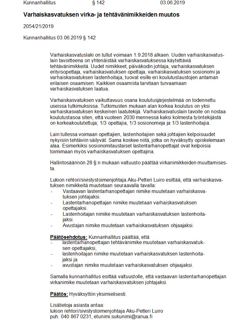 Pöytäkirja 03.06.2019/Pykälä 142