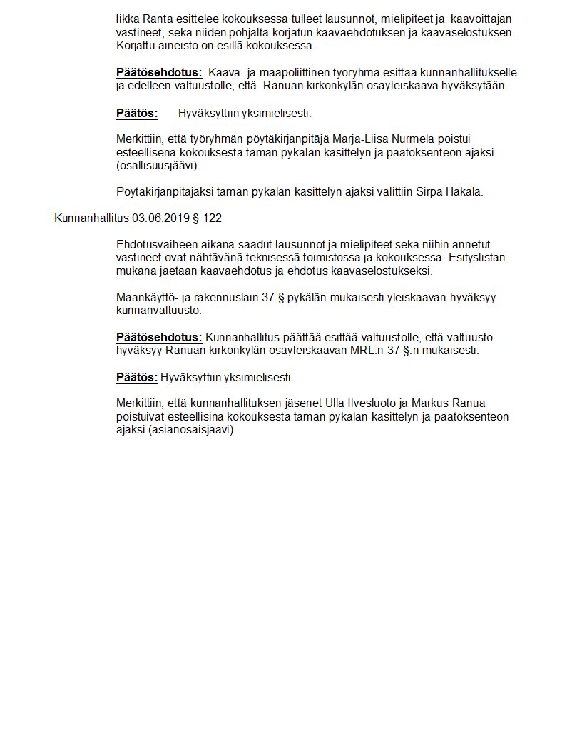 Pöytäkirja 03.06.2019/Pykälä 122