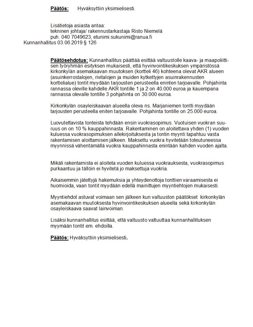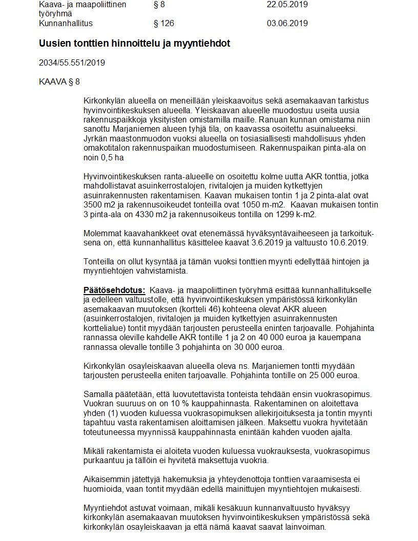 Pöytäkirja 03.06.2019/Pykälä 126