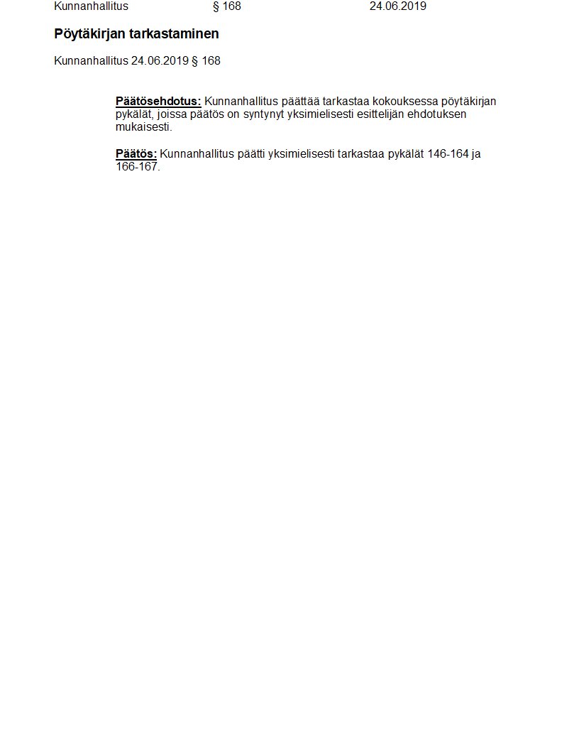 Pöytäkirja 24.06.2019/Pykälä 168
