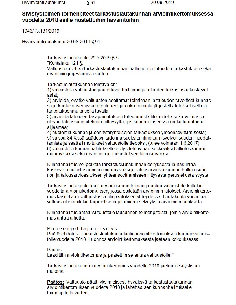 Pöytäkirja 20.08.2019/Pykälä 91