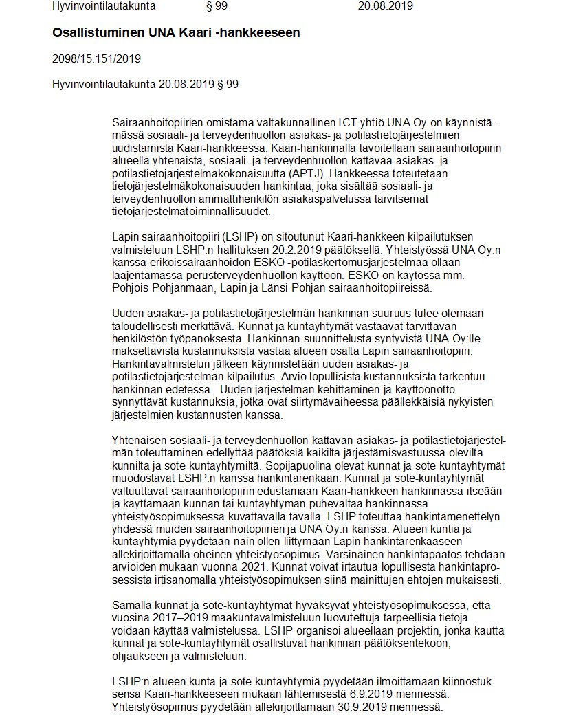 Pöytäkirja 20.08.2019/Pykälä 99