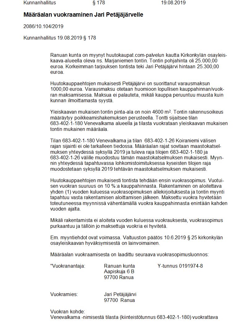 Pöytäkirja 19.08.2019/Pykälä 178
