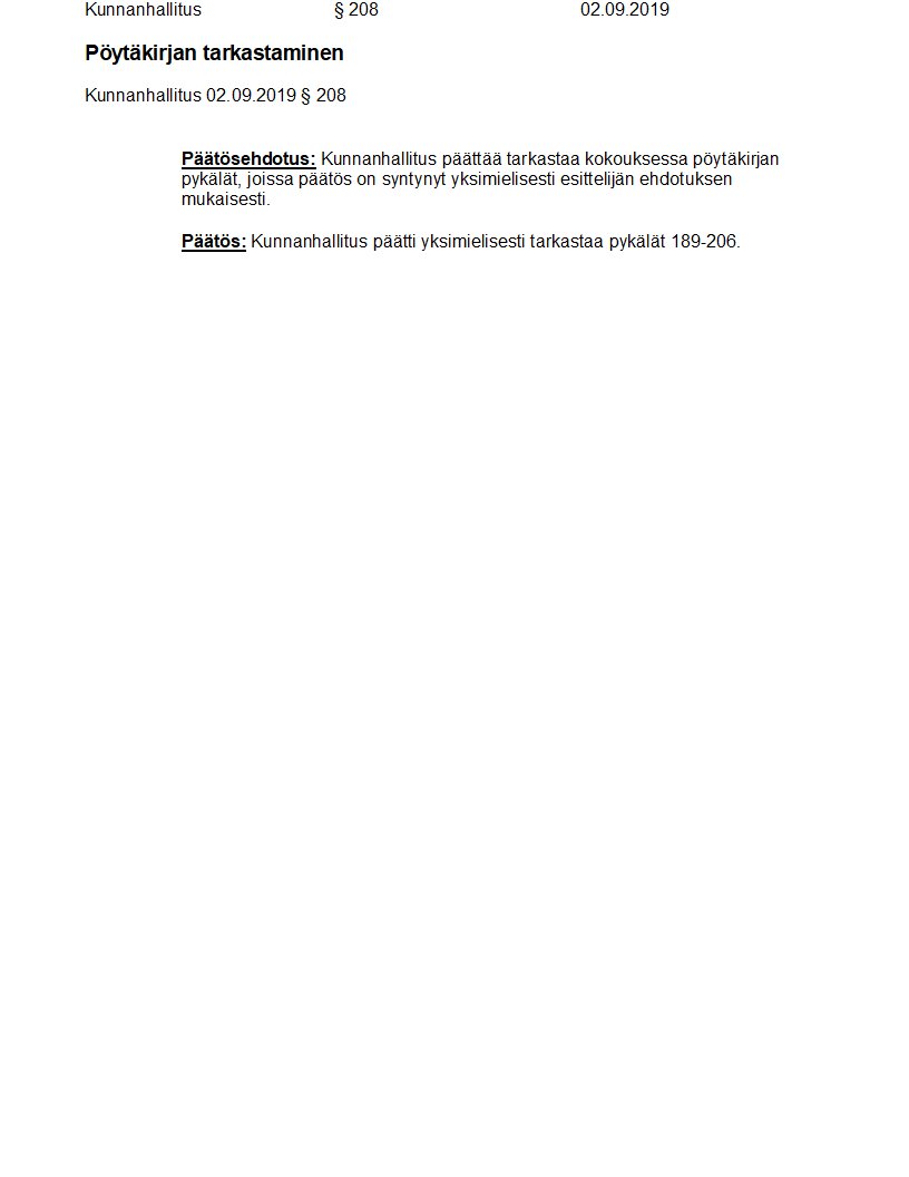 Pöytäkirja 02.09.2019/Pykälä 208
