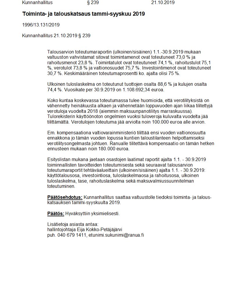 Pöytäkirja 21.10.2019/Pykälä 239