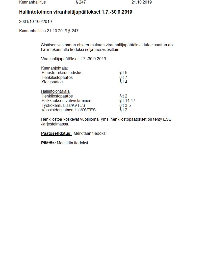 Pöytäkirja 21.10.2019/Pykälä 247