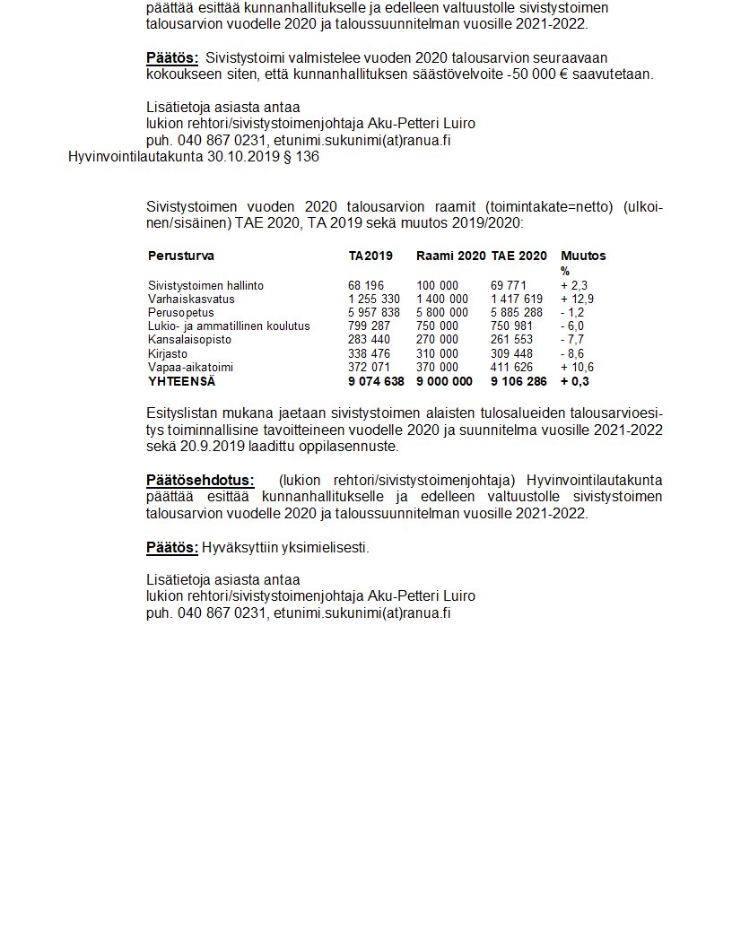 Pöytäkirja 30.10.2019/Pykälä 136