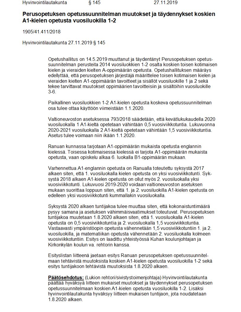 Pöytäkirja 27.11.2019/Pykälä 145