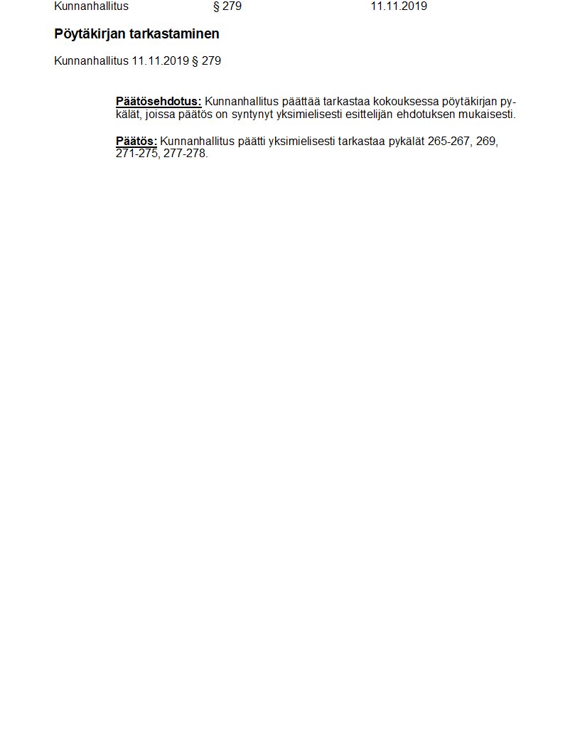 Pöytäkirja 11.11.2019/Pykälä 279