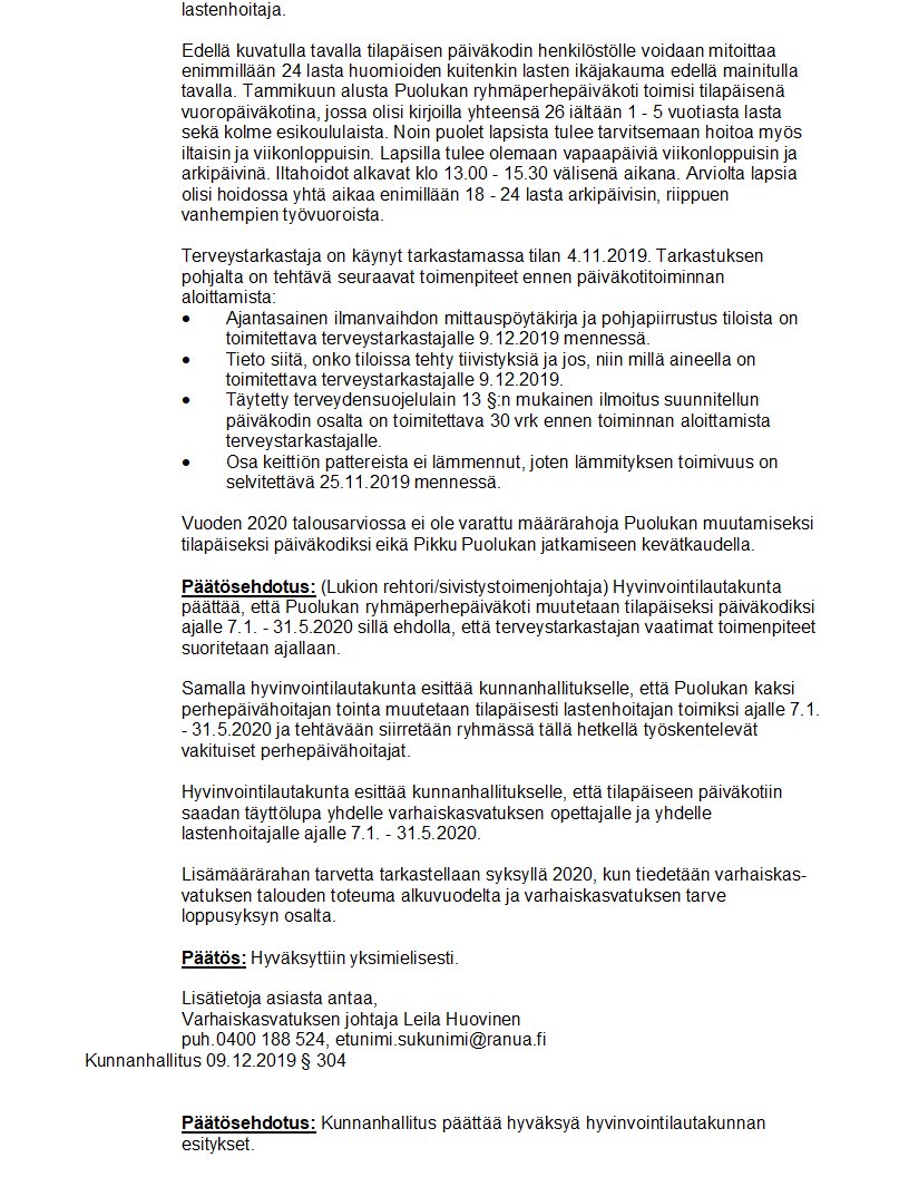 Pöytäkirja 09.12.2019/Pykälä 304