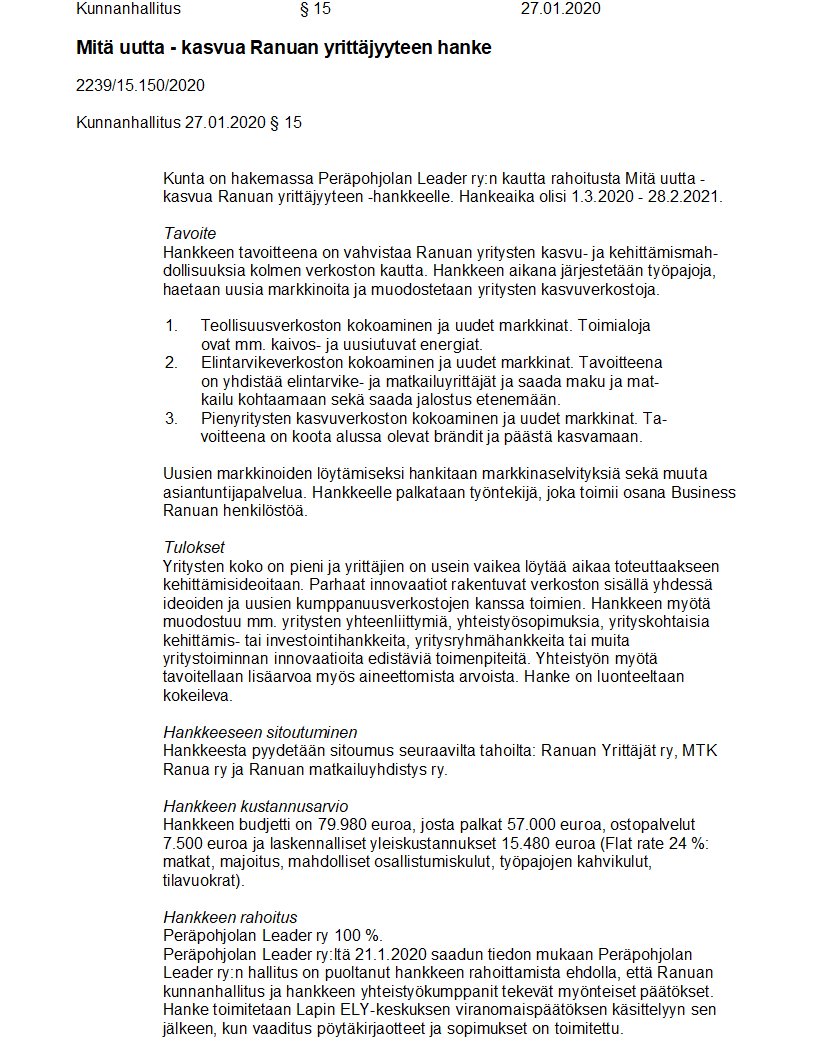 Pöytäkirja 27.01.2020/Pykälä 15