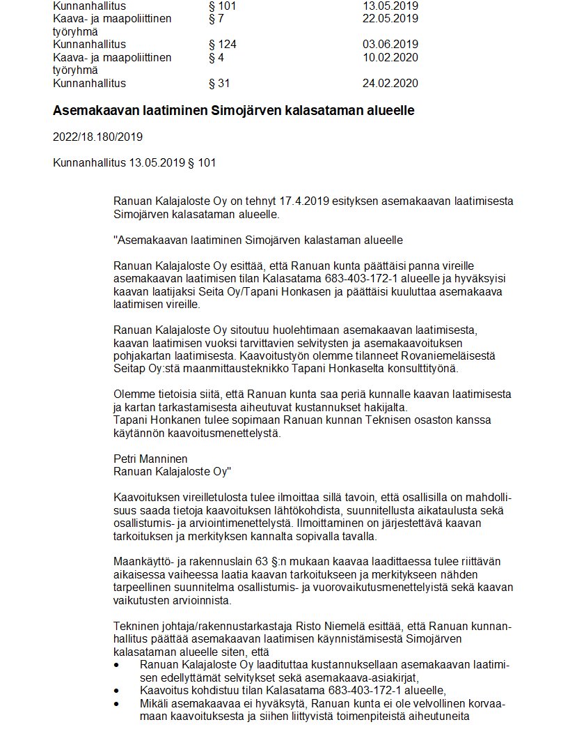| Simojärven kalasataman asemakaavaluonnoksen selostus |