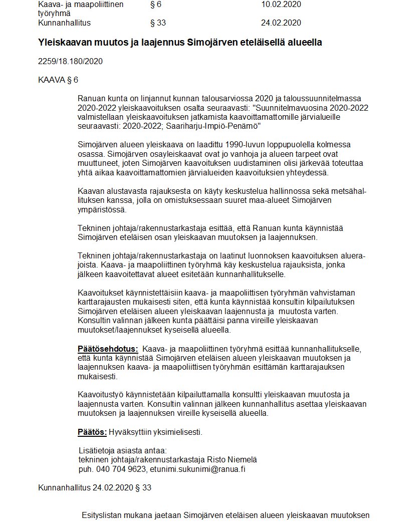 Pöytäkirja 24.02.2020/Pykälä 33