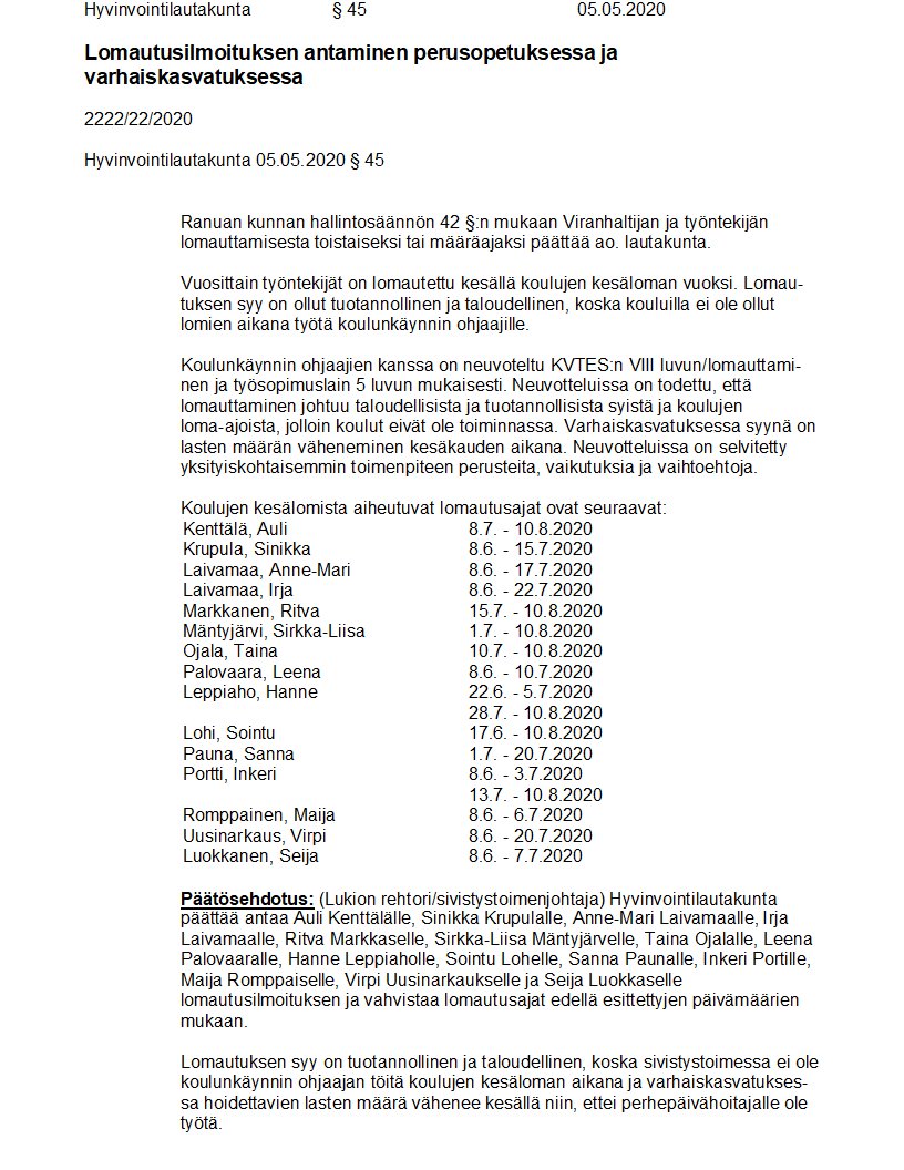 Pöytäkirja 05.05.2020/Pykälä 45