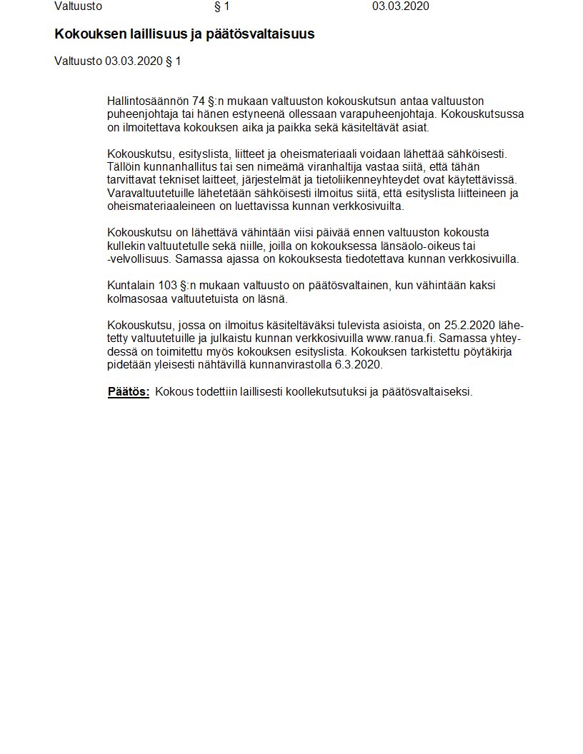 Pöytäkirja 03.03.2020/Pykälä 1