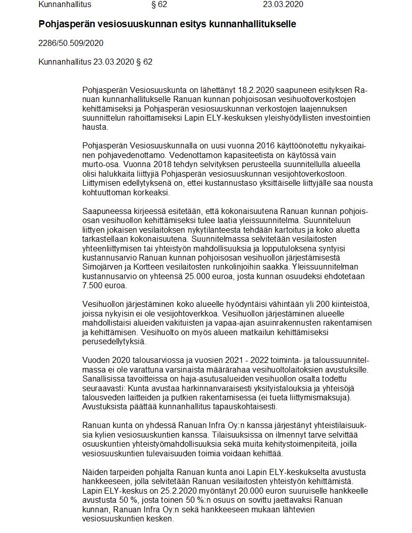 Pöytäkirja 23.03.2020/Pykälä 62