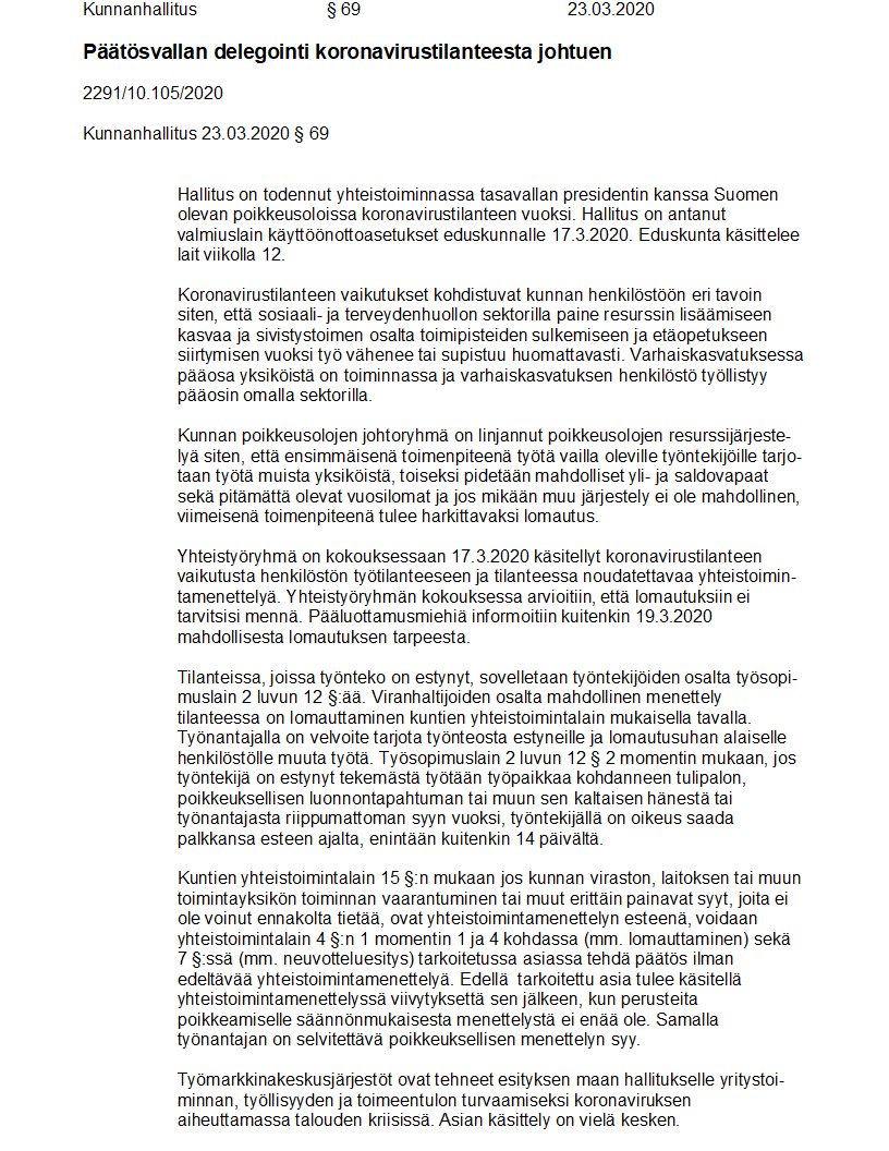 Pöytäkirja 23.03.2020/Pykälä 69