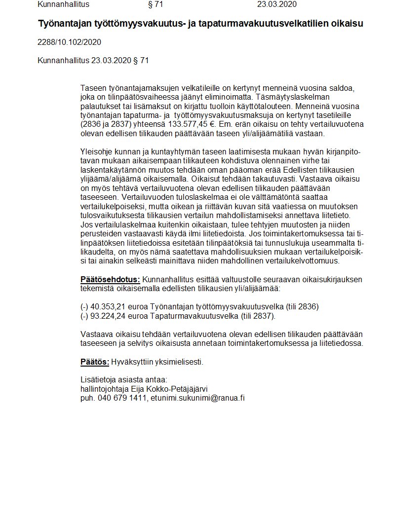 Pöytäkirja 23.03.2020/Pykälä 71