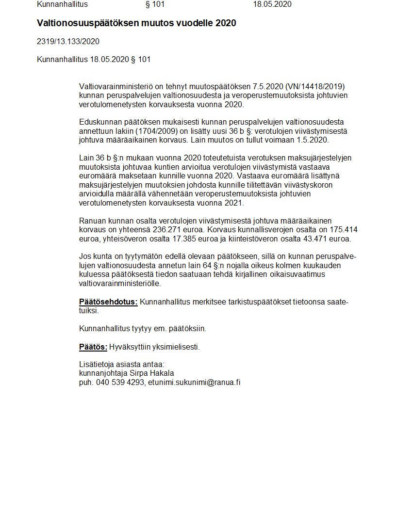 Pöytäkirja 18.05.2020/Pykälä 101