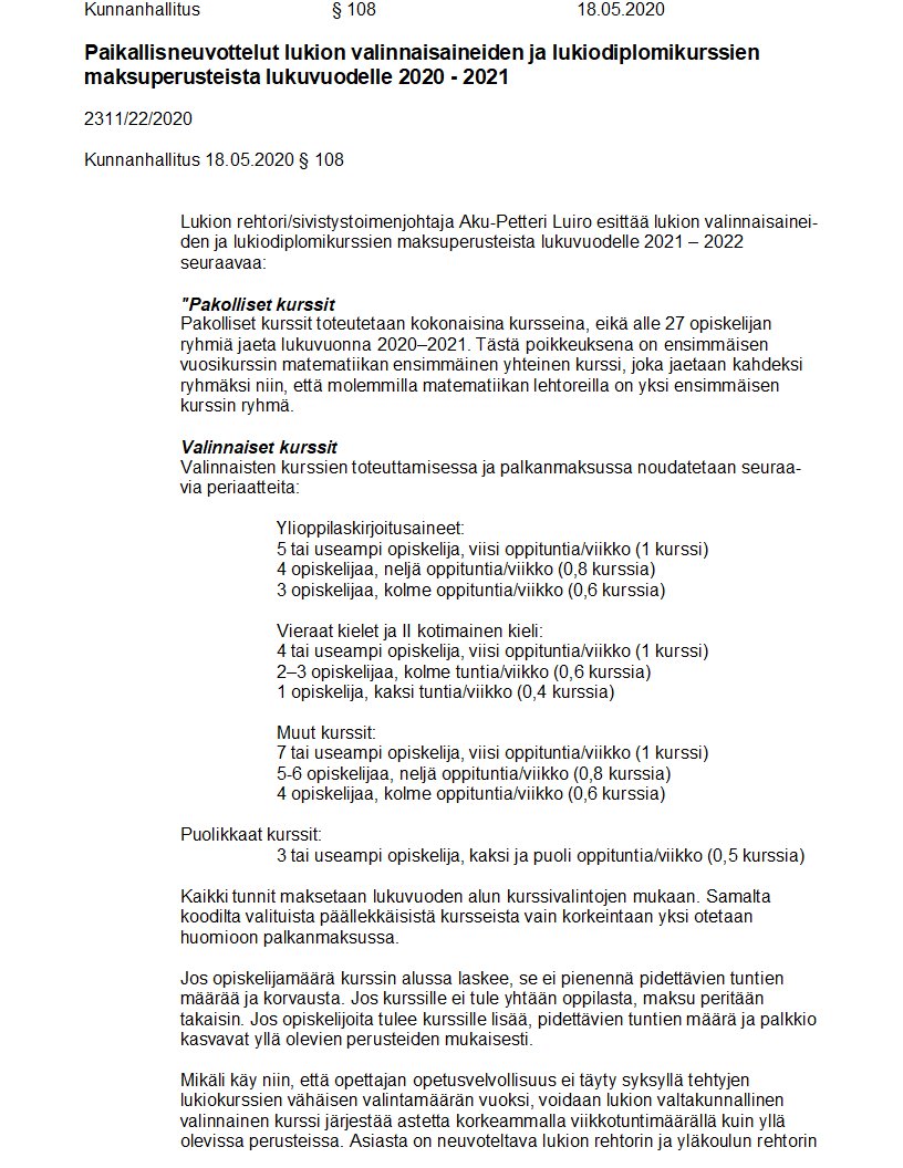 Pöytäkirja 18.05.2020/Pykälä 108