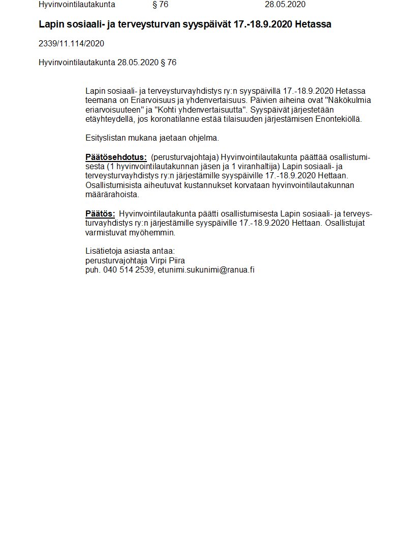 Pöytäkirja 28.05.2020/Pykälä 76