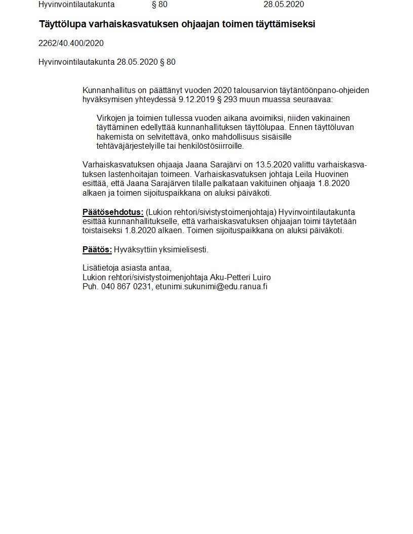 Pöytäkirja 28.05.2020/Pykälä 80