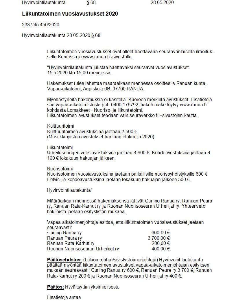 Pöytäkirja 28.05.2020/Pykälä 68