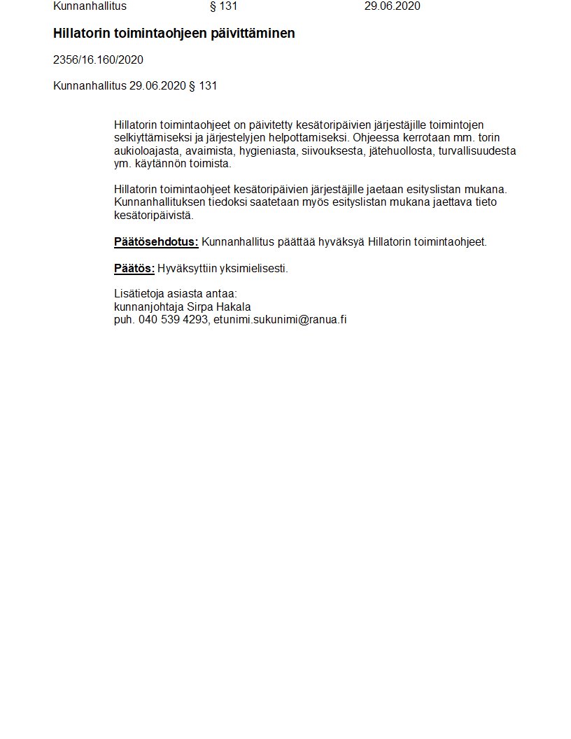 Pöytäkirja 29.06.2020/Pykälä 131