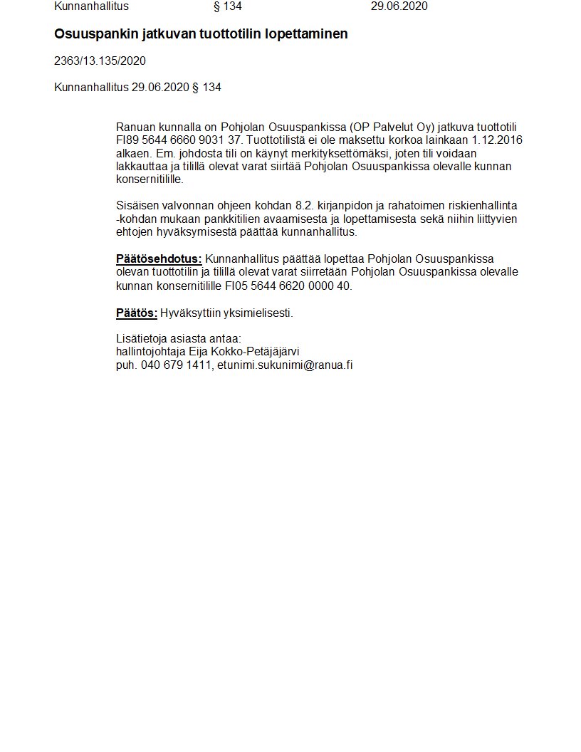 Pöytäkirja 29.06.2020/Pykälä 134