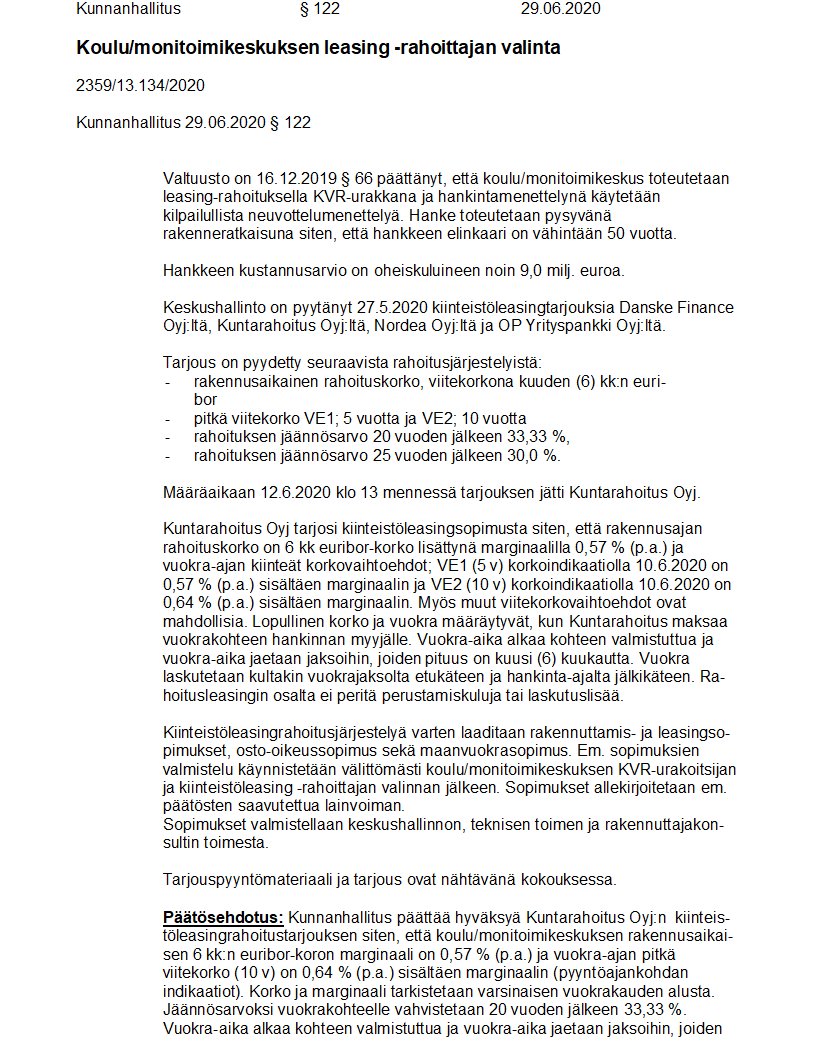 Pöytäkirja 29.06.2020/Pykälä 122