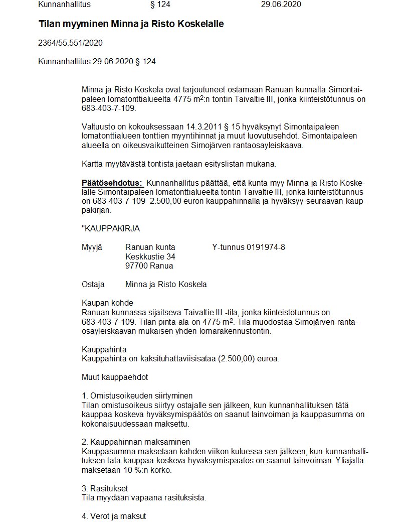 Pöytäkirja 29.06.2020/Pykälä 124