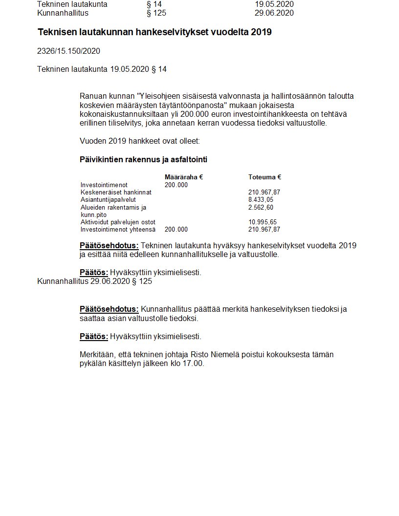 Pöytäkirja 29.06.2020/Pykälä 125